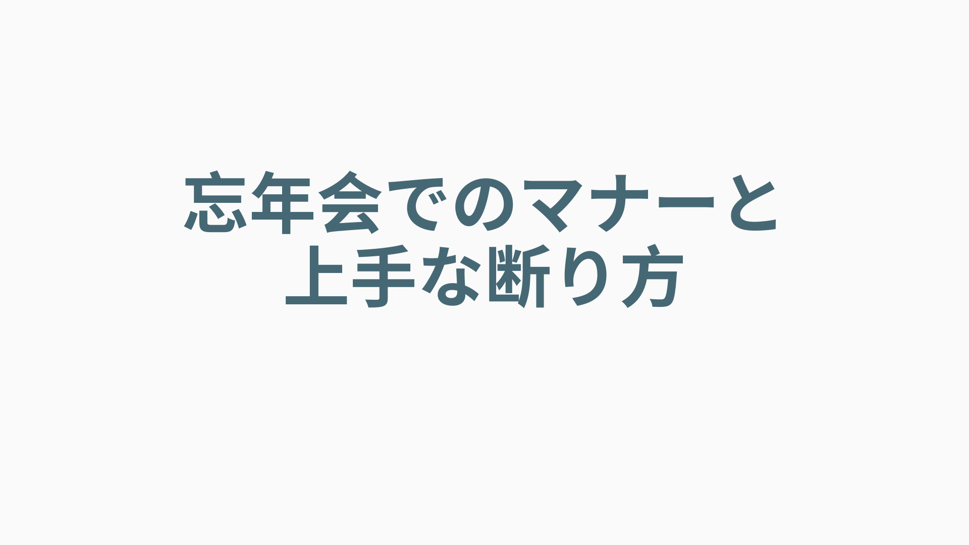 - 職場の忘年会は業務外の場でも、社会人としてのマナーが求められます。
