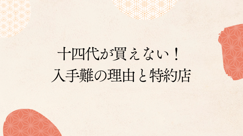 十四代が買えない。特約店限定販売の仕組みや入手の難しさ、抽選や購入条件の詳細、定価で購入するためのコツをご紹介します。 -